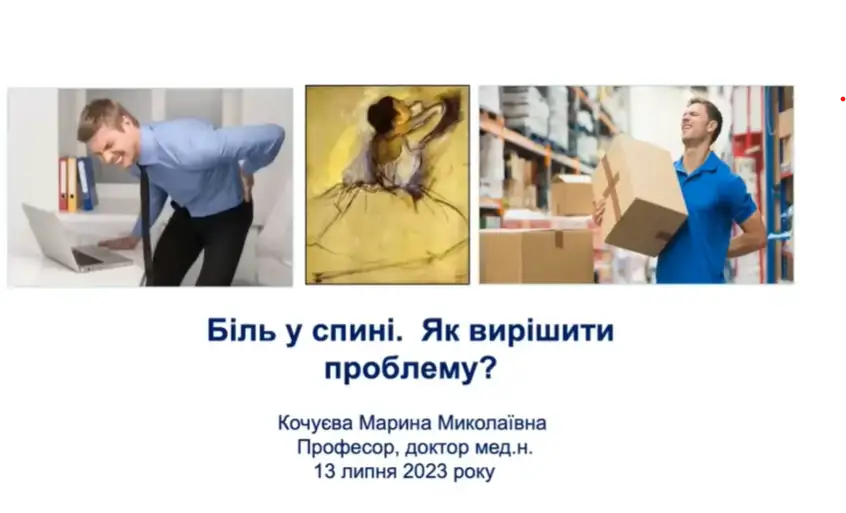 Запис лекції на тему «Біль у спині. Як вирішити проблему?» тривалістю 40 хв, на онлайн-заході – науково-практичному семінарі "Поліпрагмазія", який відбувся 13.07.2023 року, в онлайн режимі, трансляція через сайт https://www.pharmacy.org.ua/conference/ 13.07.2023