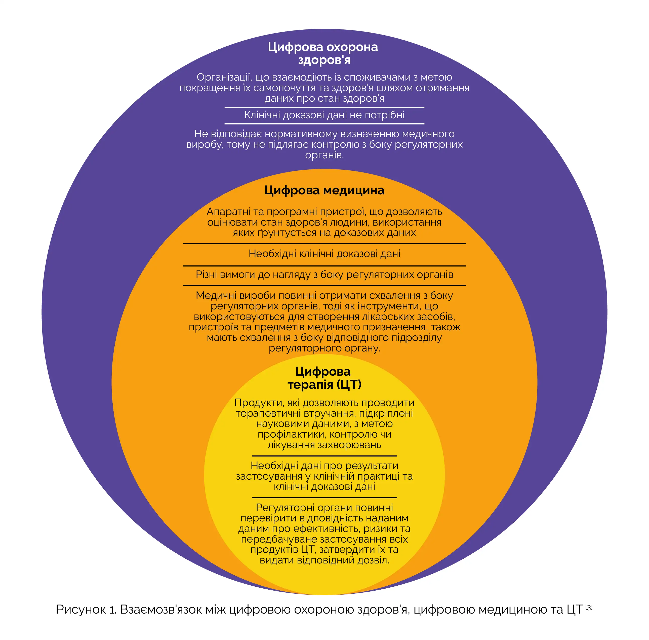 Взаємозв'язок між цифровою охороною здоров'я, цифровою медициною та цифровою терапією