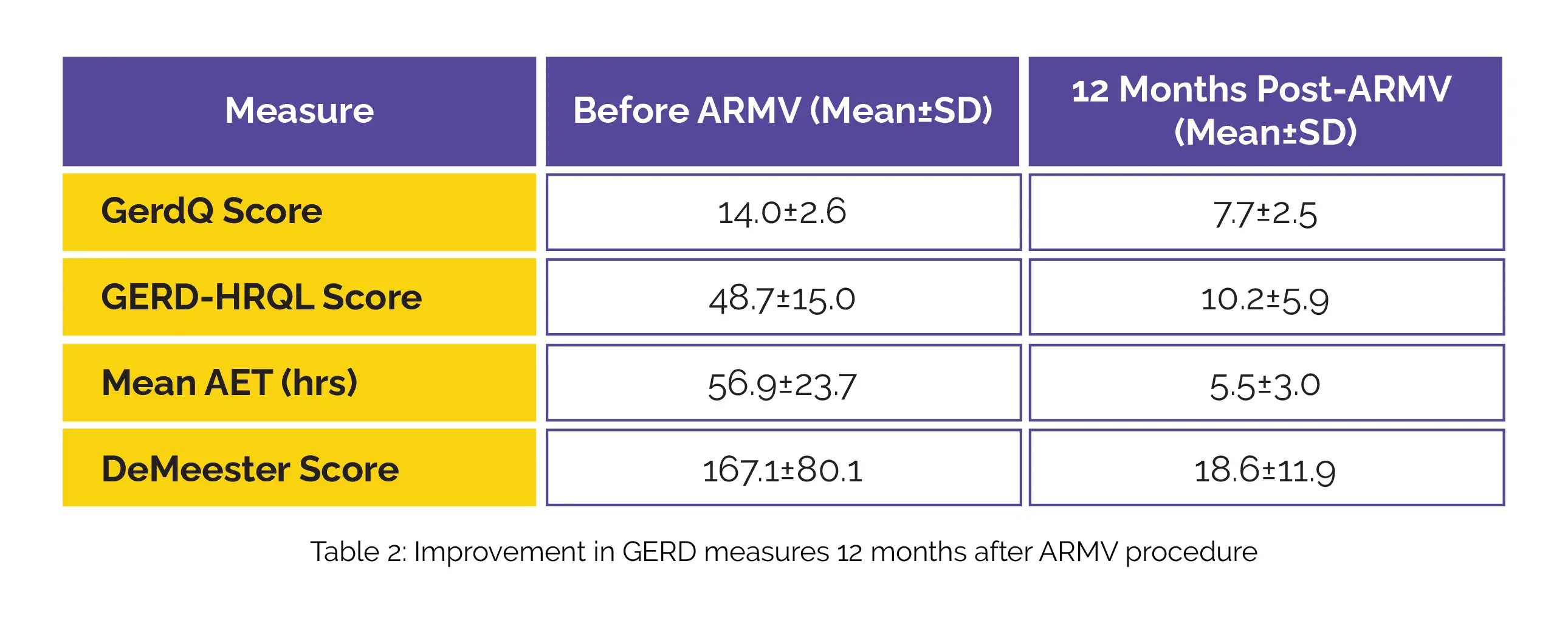 Anti-reflux mucosal valvuloplasty delivers effective acid reflux relief in GERD patients