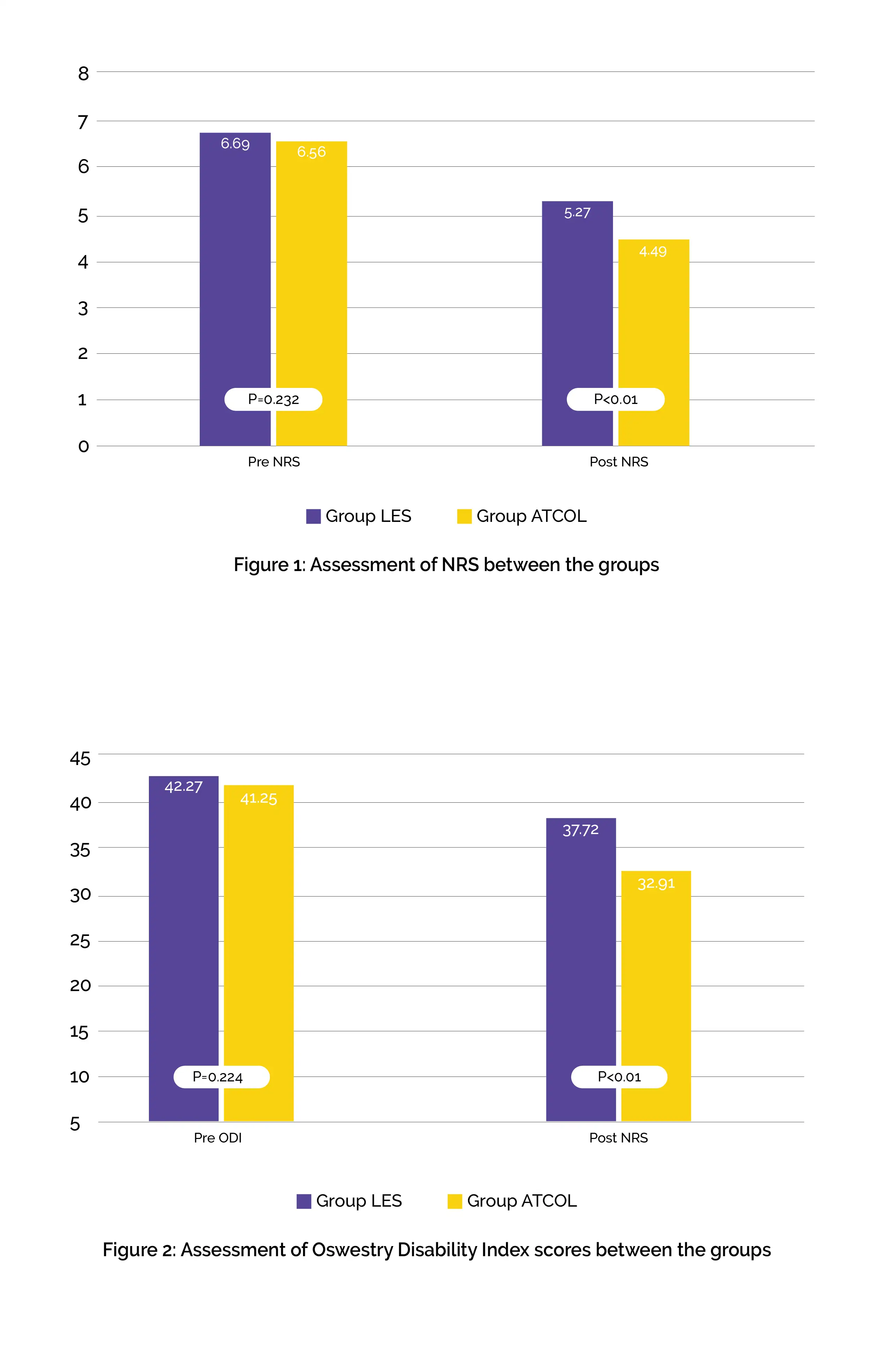 Substantial reduction in pain and functional recovery were observed in both groups (Figure 1 and Figure 2).