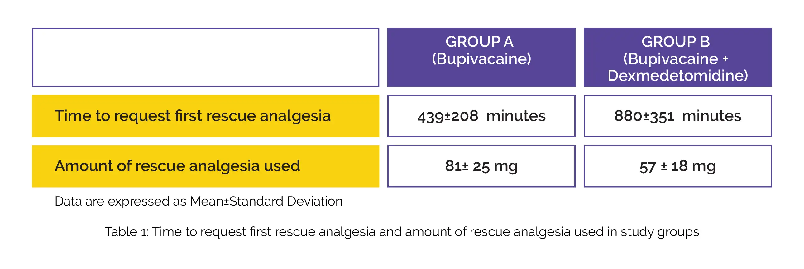 In the recovery area, bilateral QLB was administered. Group A was given 30 ml of 0.25 percent bupivacaine, whereas Group B was given 30 ml of 0.25 percent bupivacaine with 1 µg/kg dexmedetomidine. They were administered an intravenous TDS (three times daily) injection of 15 mg/kg paracetamol and 1 mg/kg tramadol injection as rescue analgesia (if their NRS score was >4).