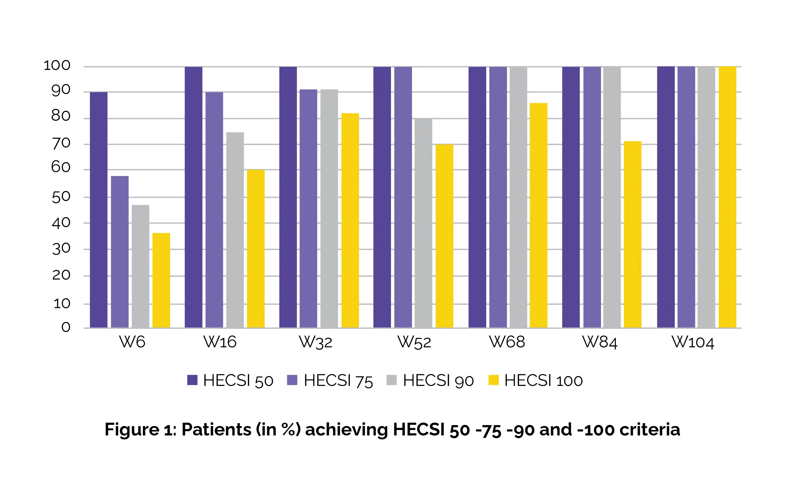 In a total of 21 individuals suffering from hand dermatitis, the use of Dupilumab by week 16 led to an astounding 90% of patients fulfilling the HECSI-75 criteria, a figure that soared to 100% by week 104 (details in Figure 1). A majority of patients achieved HECSI-90 and HECSI-100, indicating near-complete resolution of symptoms.