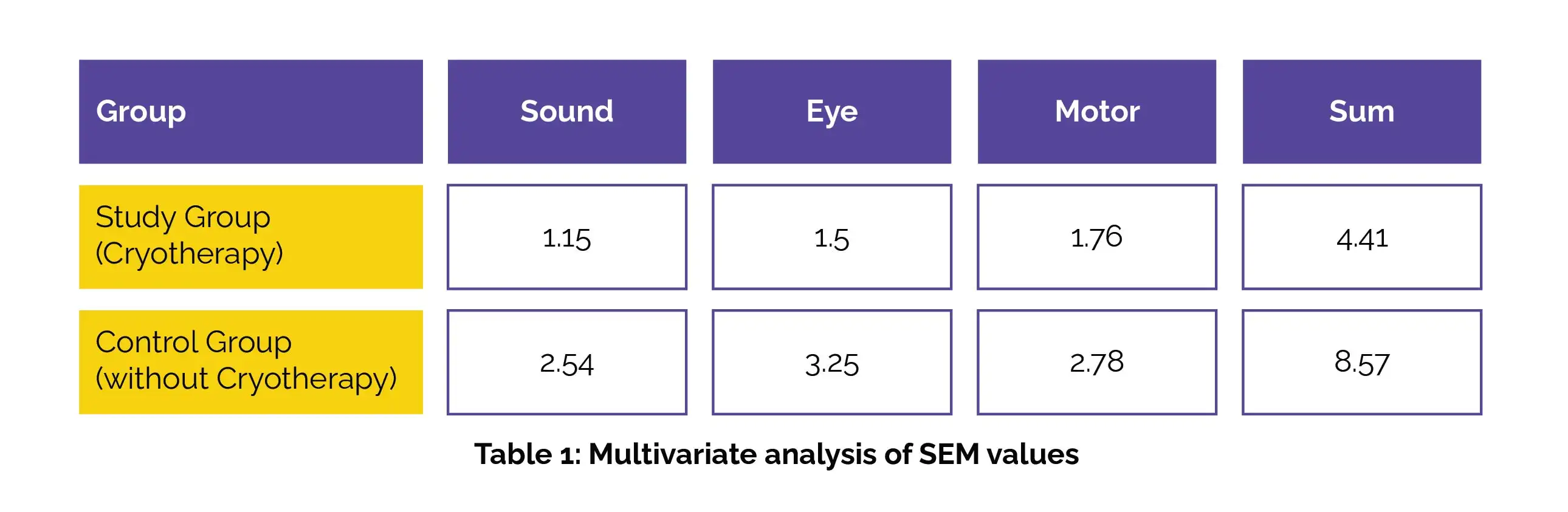 The sound, eye, motor (SEM) was used to estimate the pain response. Univariate analysis revealed no statistically noteworthy difference between the two groups, whereas multivariate analysis revealed a noteworthy difference, as shown in Table 1:
