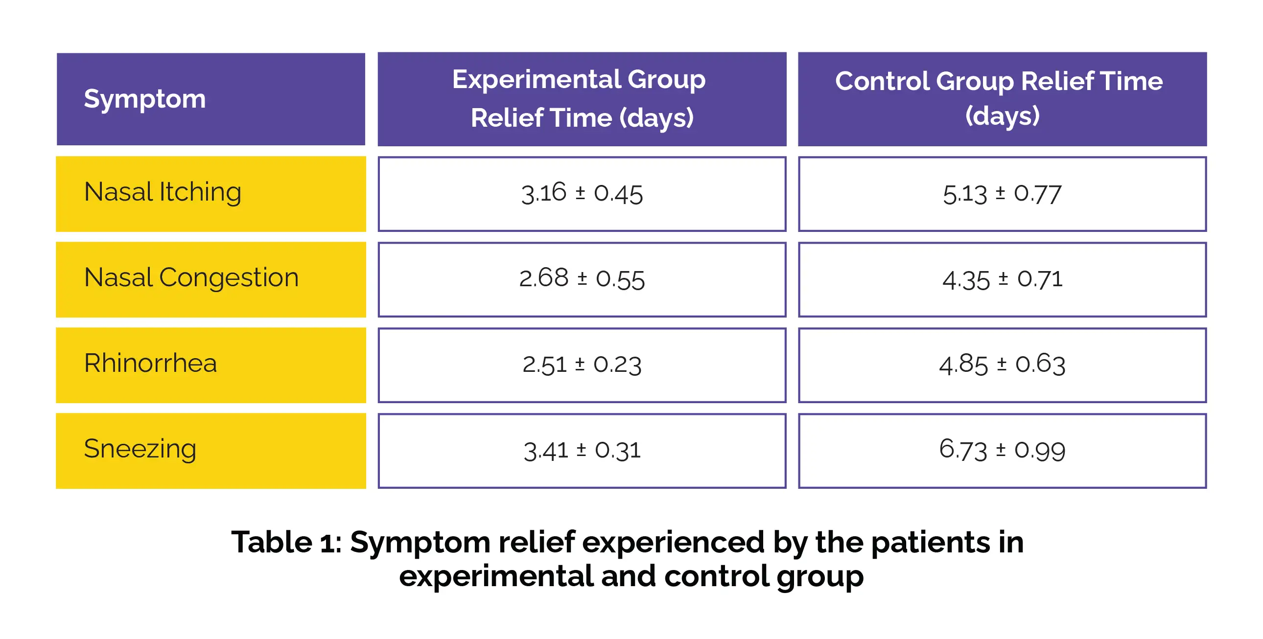 The results were striking: patients in the multimodal therapy group experienced suggestively quicker symptom relief across numerous key AR symptoms. Also, itching in the nose, congestion, rhinorrhea, and sneezing were significantly relieved much faster than in the control group (Table 1).