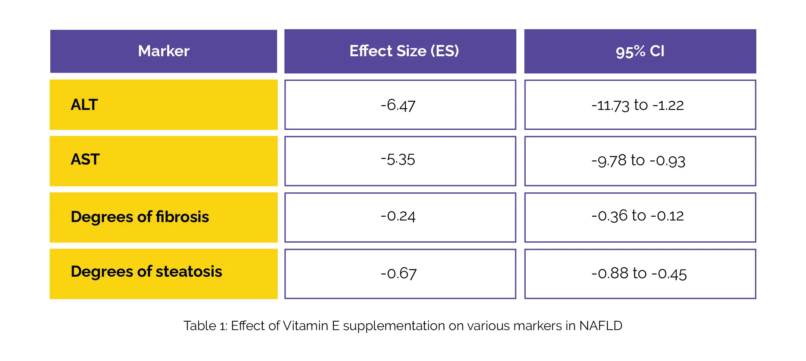 A recent umbrella review of meta-analyses on randomized controlled trials suggest that Vitamin E administration holds promise in improving key nonalcoholic fatty liver disease (NAFLD) markers, such as alanine aminotransferase (ALT), aspartate aminotransferase (AST), fibrosis, and steatosis.