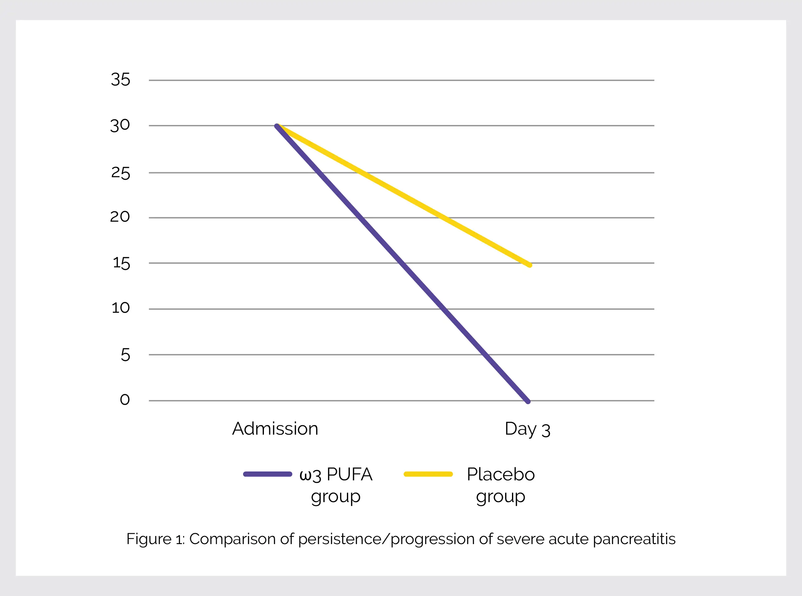 In people with severe acute pancreatitis, omega-3 polyunsaturated fatty acids (ω-3 PUFA) supplementation decreased disease progression/ persistence, minimized length of hospital stay, and elicited prompt reversal of organ dysfunction and systemic inflammatory response syndrome, as elucidated from a study published in International Surgery Journal.