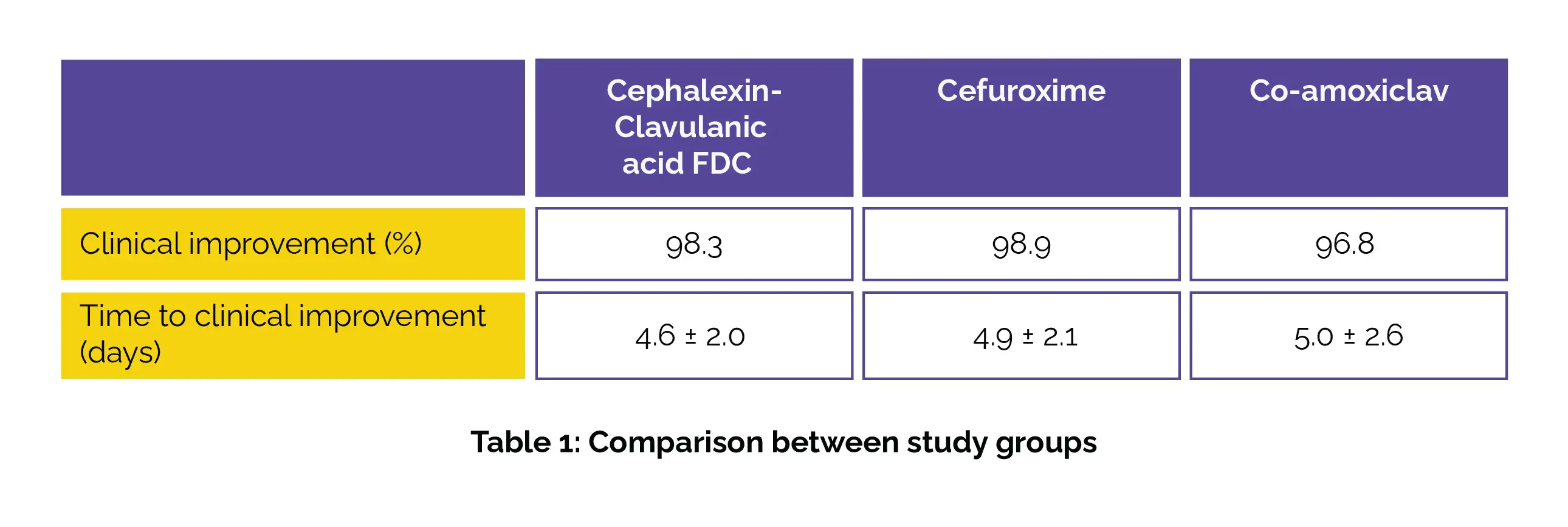 Group I (Test group) comprised subjects who were prescribed Cephalexin extended-release at doses of 375/750 mg in combination with Clavulanic acid at 125 mg. Group II (Comparator group) consisted of subjects who were prescribed either Co-Amoxiclav at a dose of 625 mg (comprising 500 mg Amoxicillin and 125 mg Clavulanic acid) or Cefuroxime at doses of 250 mg/500 mg.