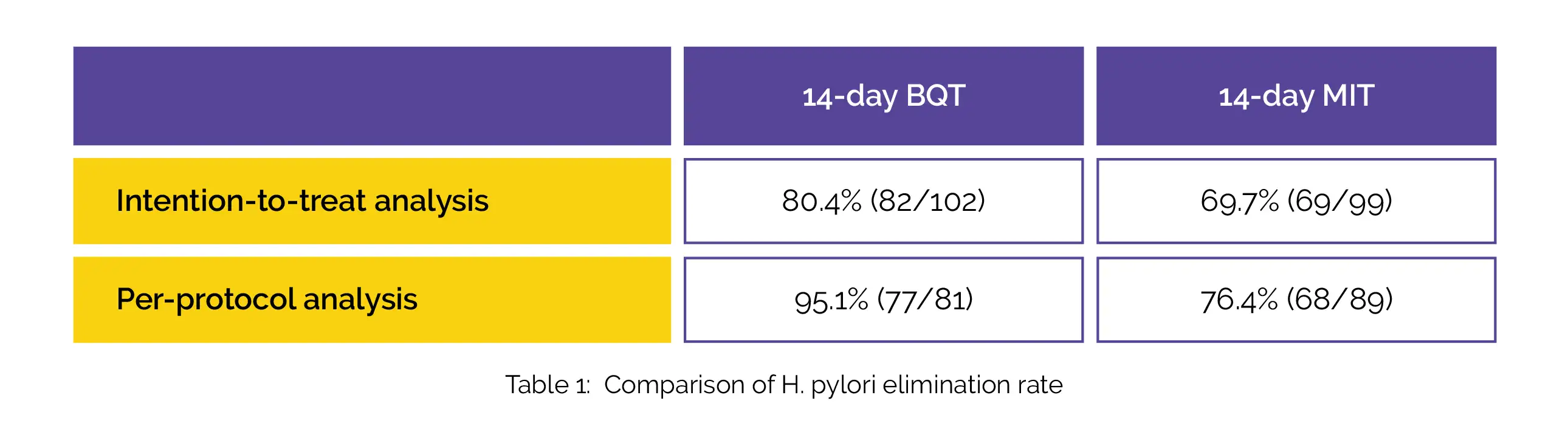 Study compares bismuth-based quadruple vs metronidazole-intensified triple therapy for H. pylori infection