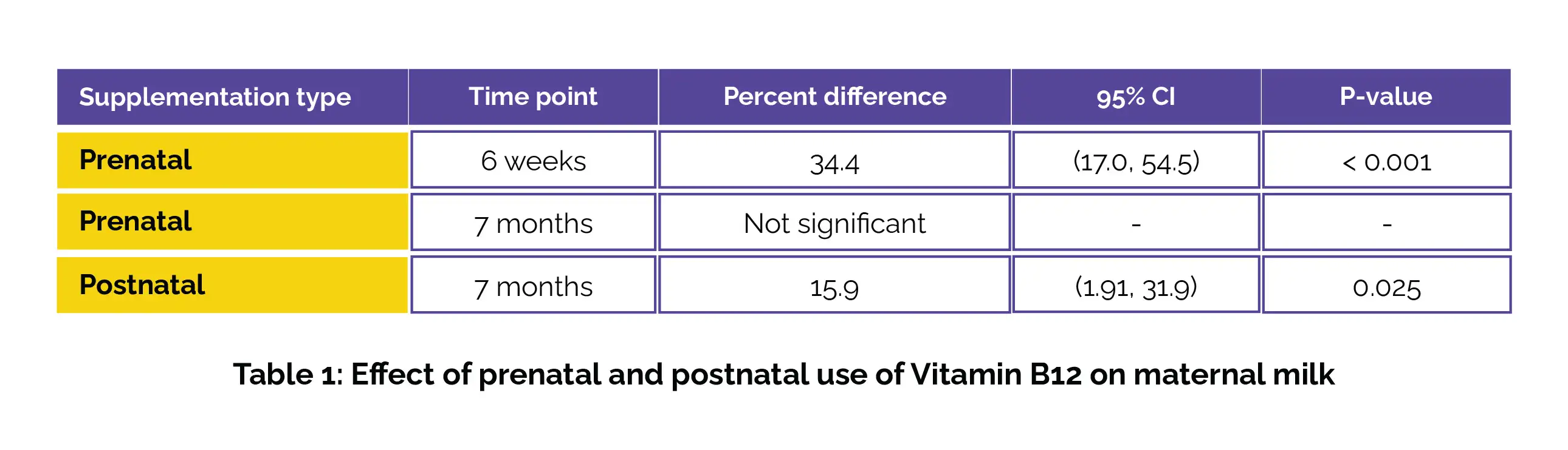 Study compares prenatal vs. postnatal Vitamin B12 effects on maternal milk composition