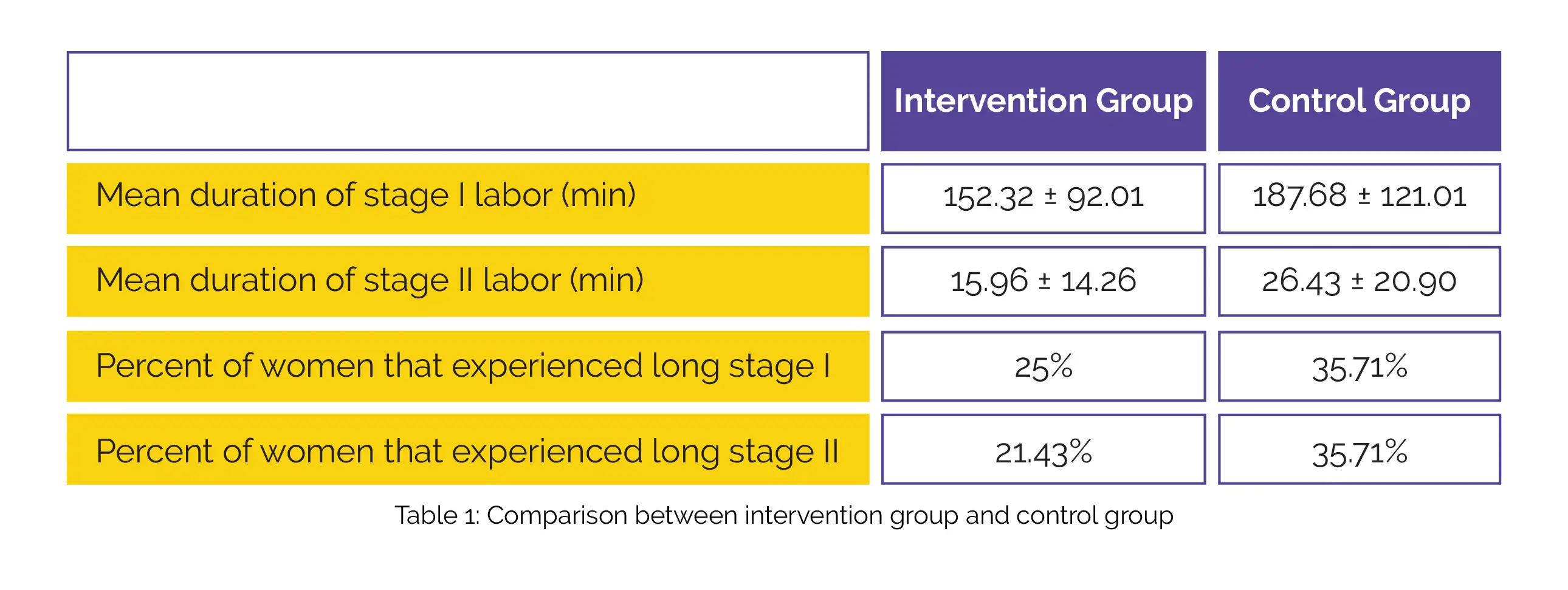 Notably, 28 patients (20 to 35 years of age) were randomly allocated to the intervention group, which received spinal anesthesia with sufentanil, and 28 subjects were allocated to the control group, which did not receive spinal anesthesia. Statistical analysis was done utilizing SPSS software 20.0. Table 1 depicts the mean duration of stage I and II of labor, and percent of women that experienced long stage I and II in the intervention group and control group.