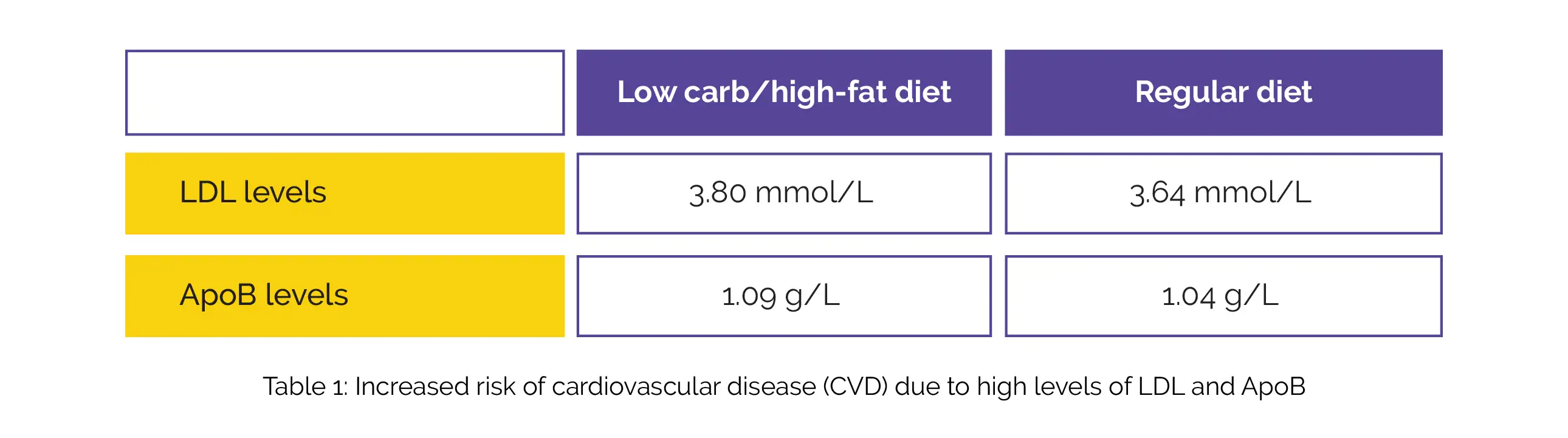 As found, the levels of LDL and ApoB were slightly more in the keto-like group compared to the people on a regular diet (Table 1):