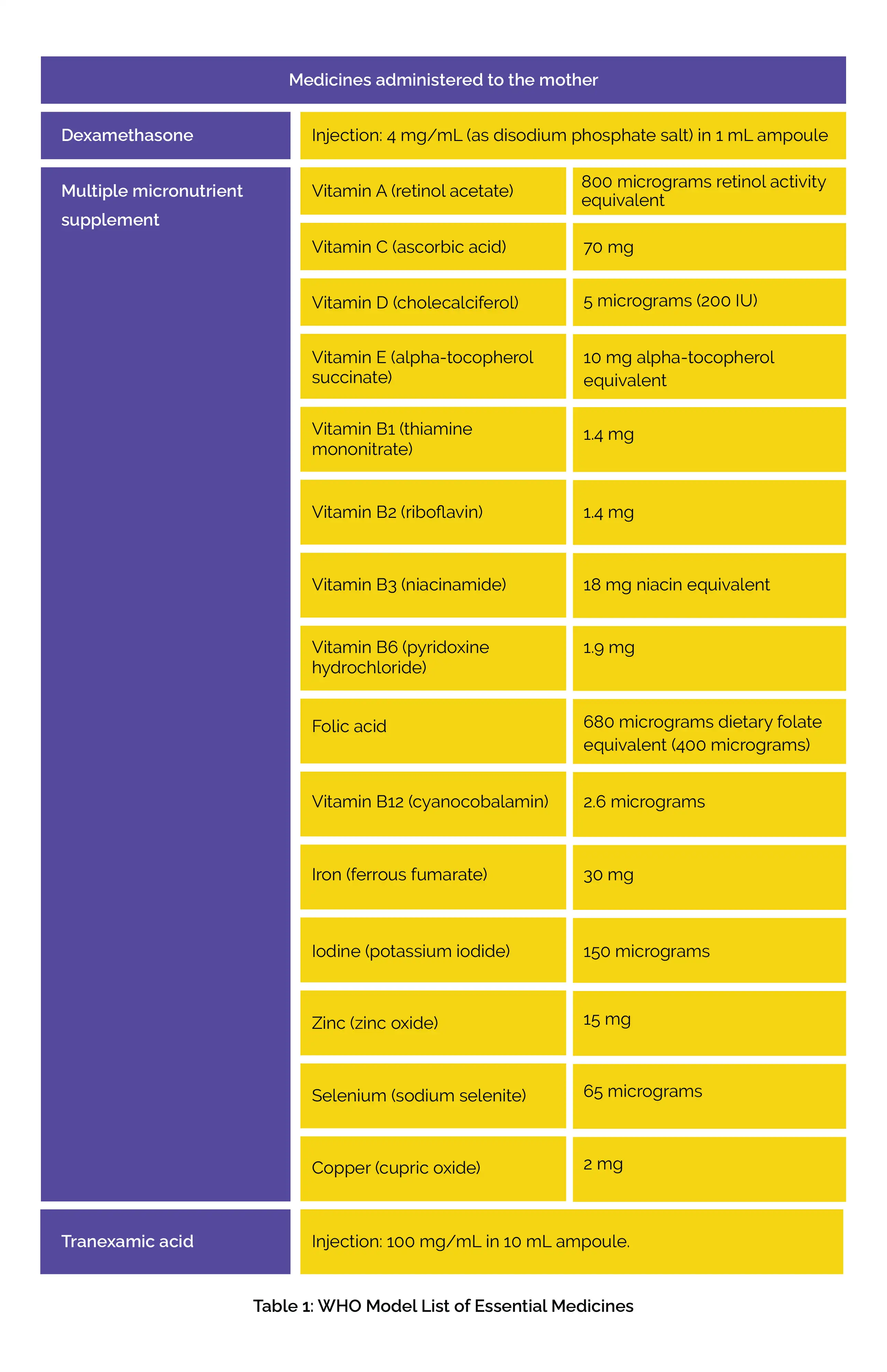 In addition to the multivitamin supplements, the WHO also included two other medicines in the list of essential medicines for pregnancy: