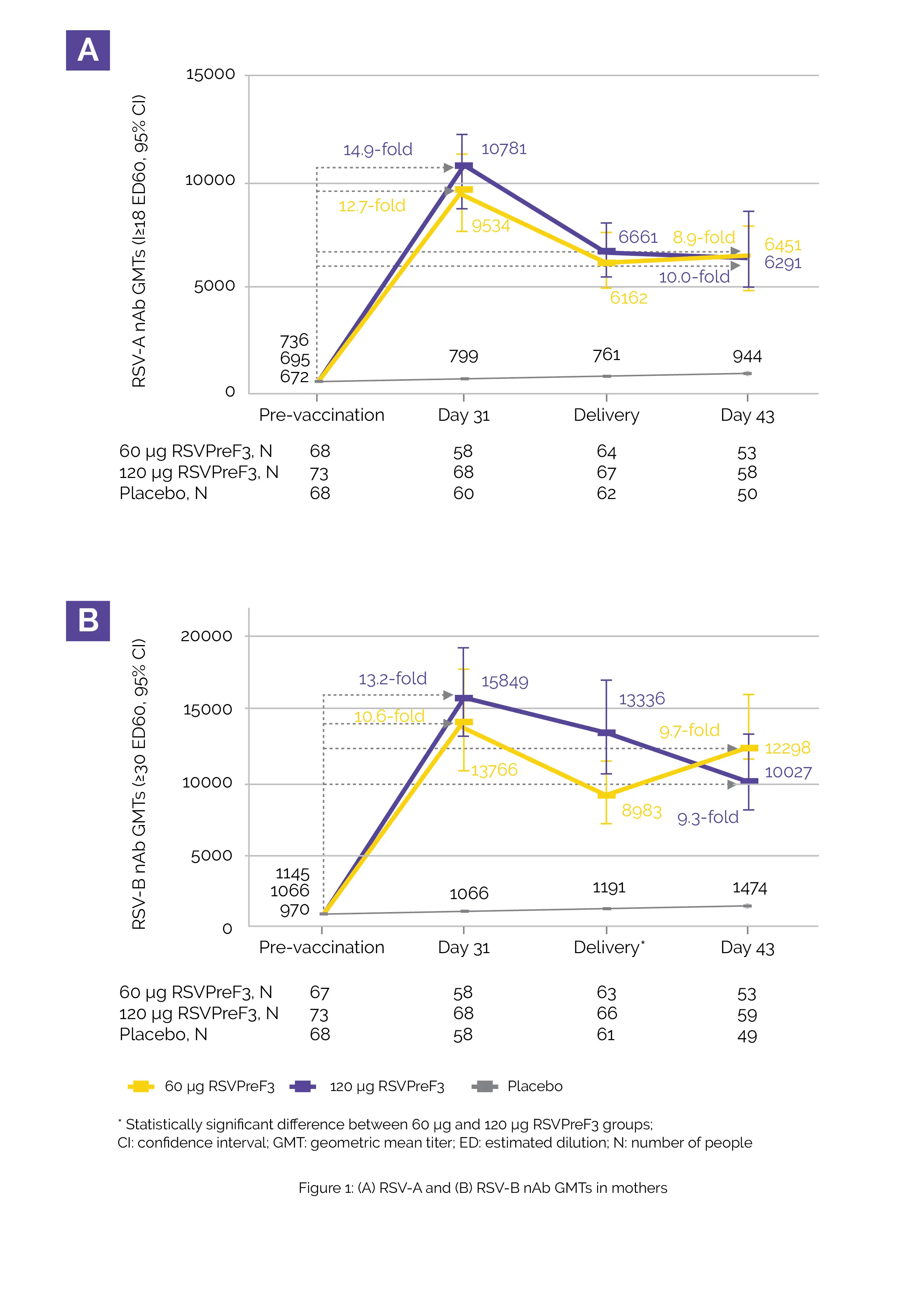 RSVPreF3 was found to be acceptable as none of the severe adverse events for pregnant women or infants were associated with the use of vaccine under consideration. The main results were apparent in the 60 µg RSVPreF3 and 120 µg RSVPreF3 groups: