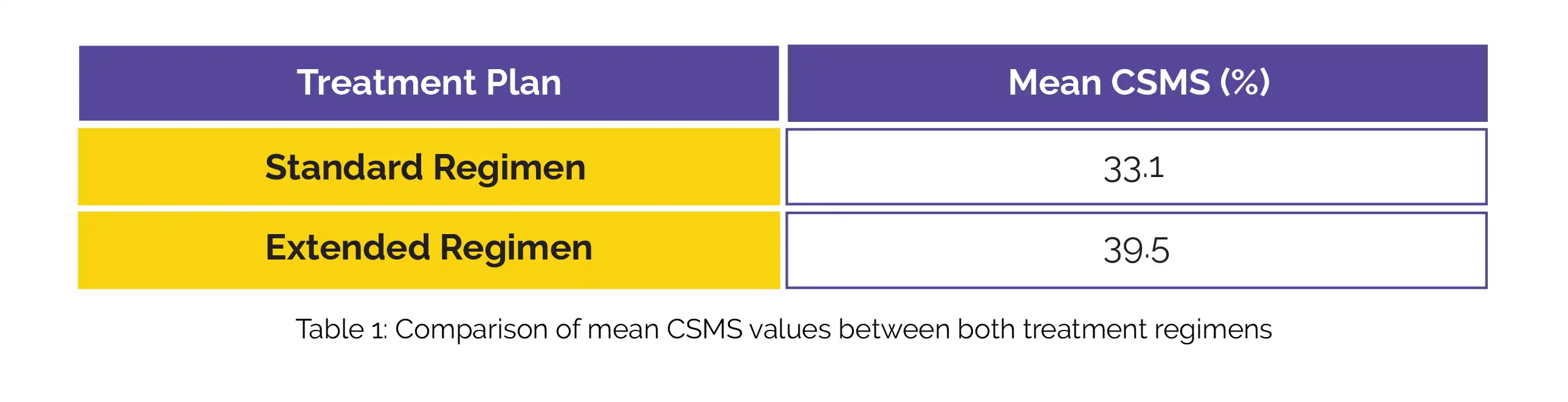 In relation to the placebo group, the mean CSMS values for the standard and extended treatment plans are depicted in Table1: