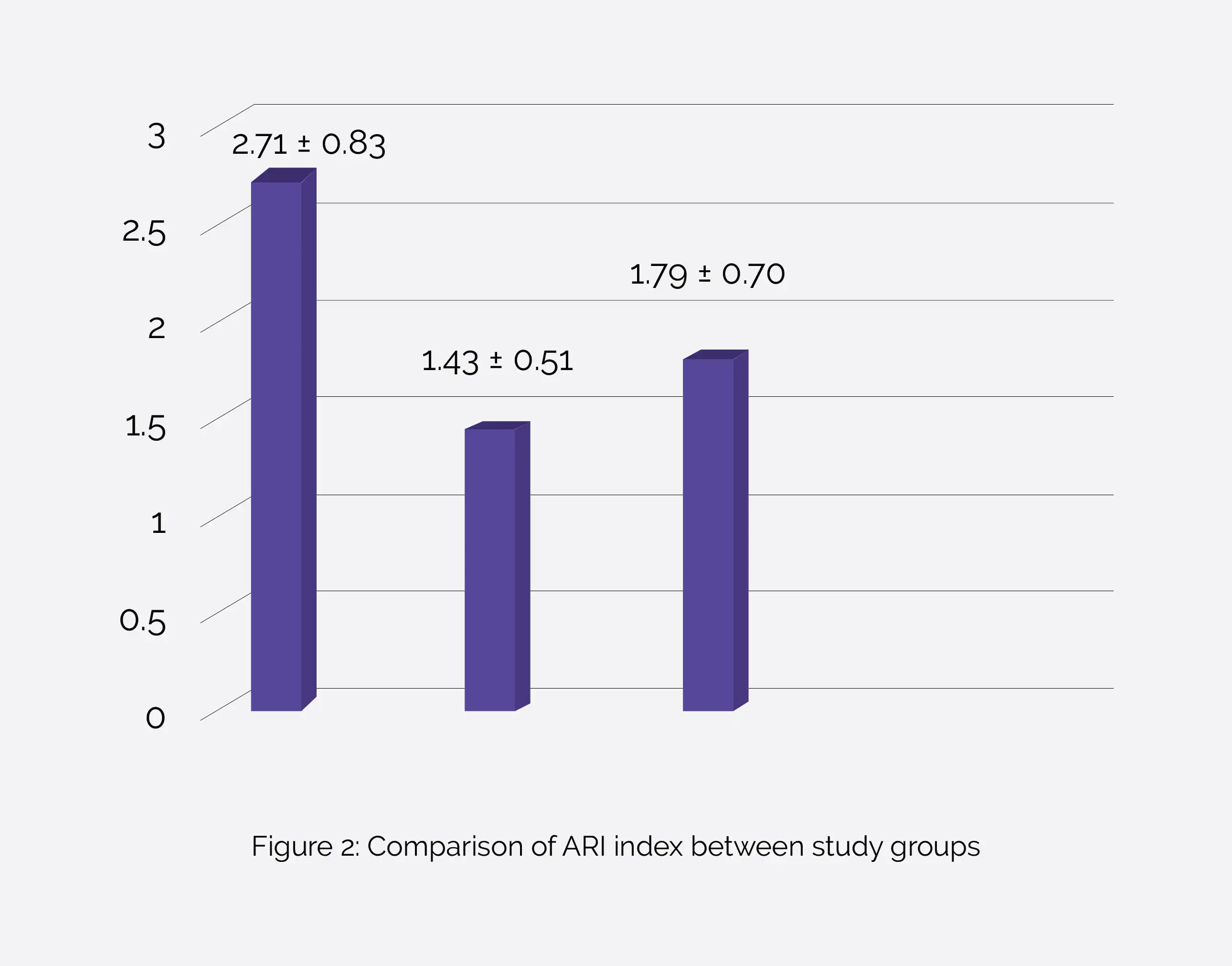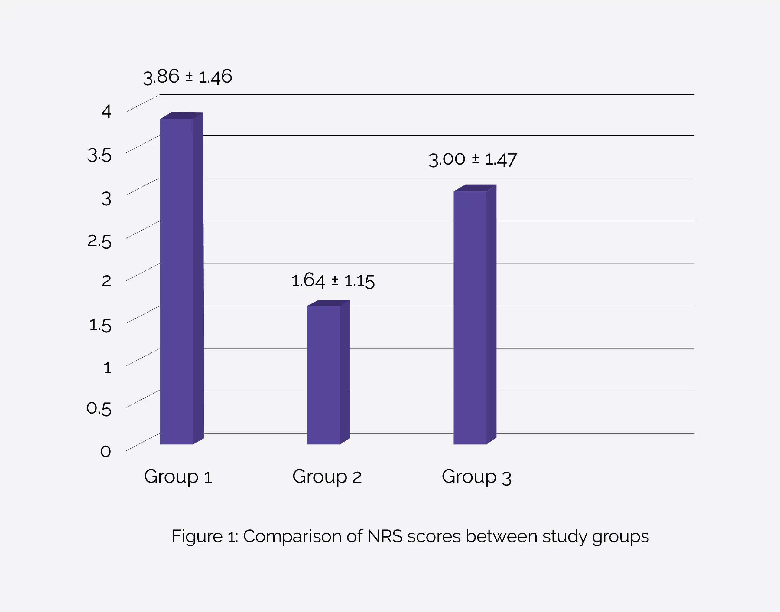 Group 1 had the highest NRS values, Group 2 had the lowest values, and Group 3 had intermediate values (Figure 1).