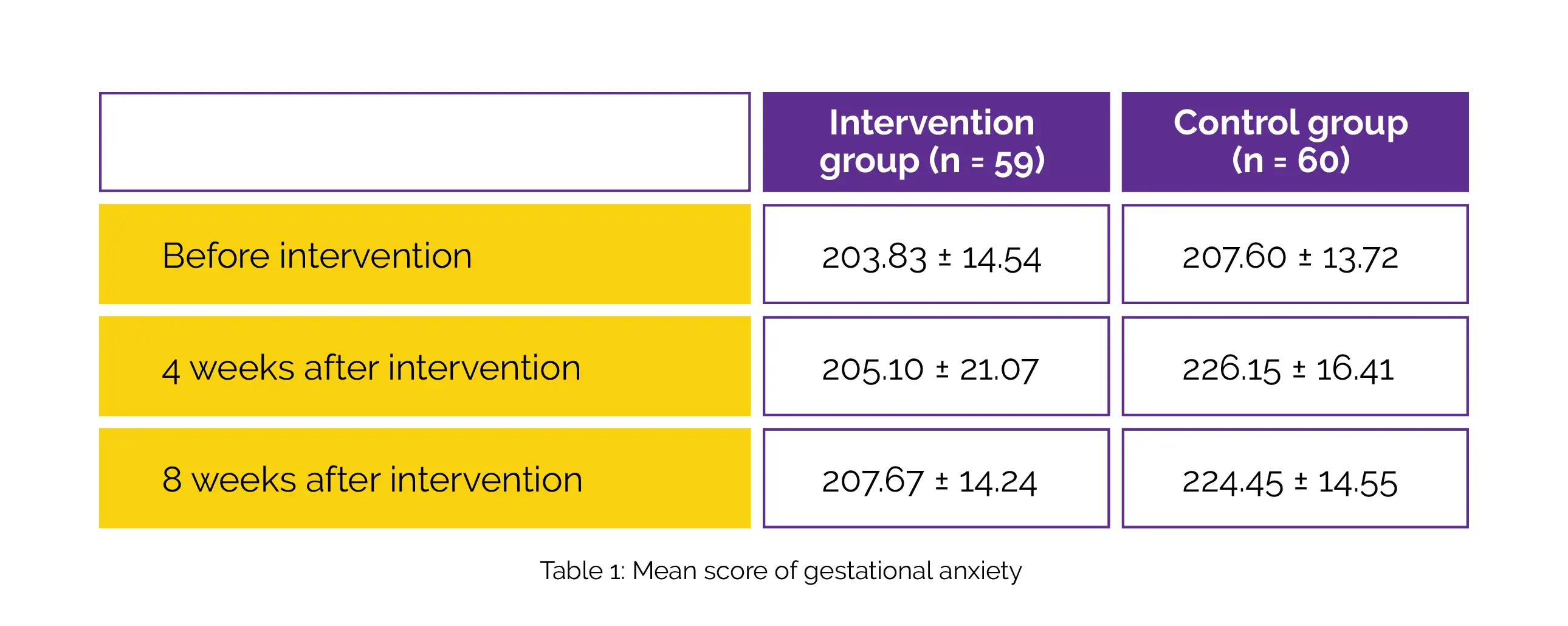 Prior to the intervention, there was no clinically meaningful inter-group difference in the total score of sexual function and total score of gestational anxiety. Contrasted to that of the control group, the mean total score of sexual function in the intervention group was considerably greater following intervention at 4 and 8 weeks. In comparison with the control group, the mean total score of gestational anxiety in the intervention group was substantially lower, 4 and 8 weeks following the intervention, as shown in Table 1: