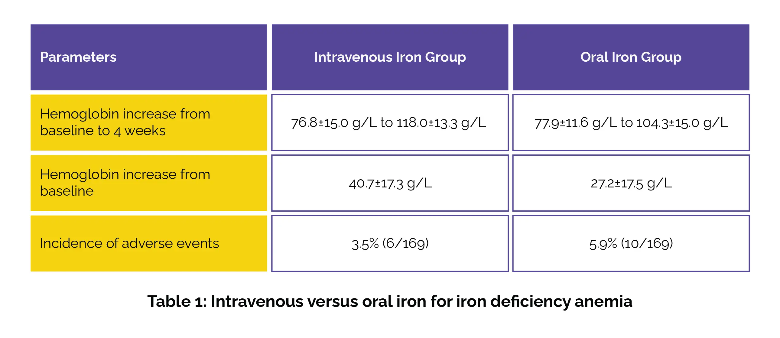 Intravenous vs. oral iron: A comparison of outcomes in iron deficiency anemia