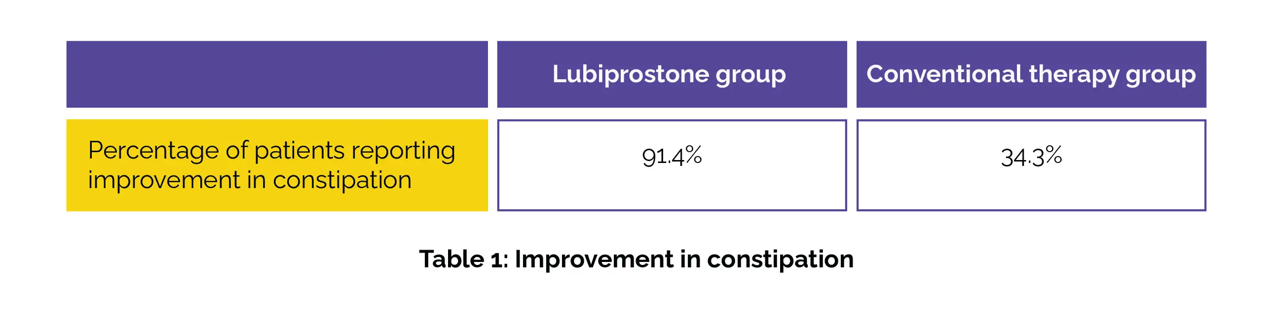 Remarkable improvements were witnessed in constipation among patients in the Lubiprostone group, as opposed to the conventional therapy group (p < 0.001), as depicted in Table 1 below: