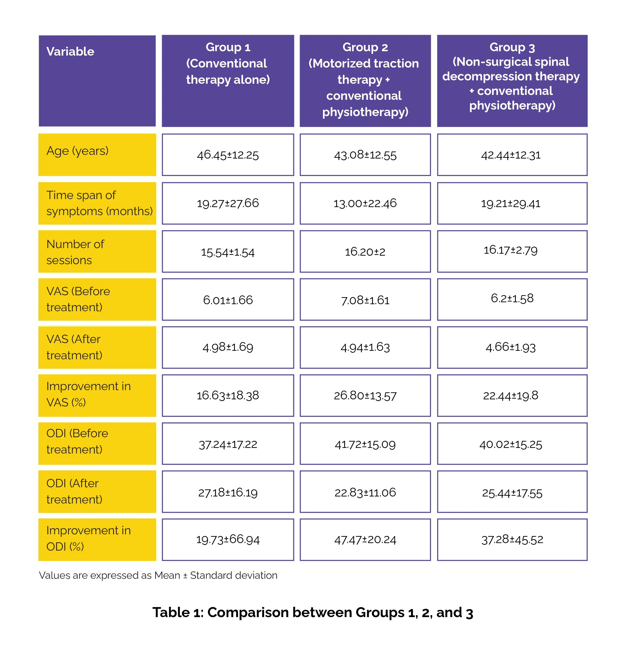 Group 3: Treated with non-surgical spinal decompression therapy alongside conventional therapy
