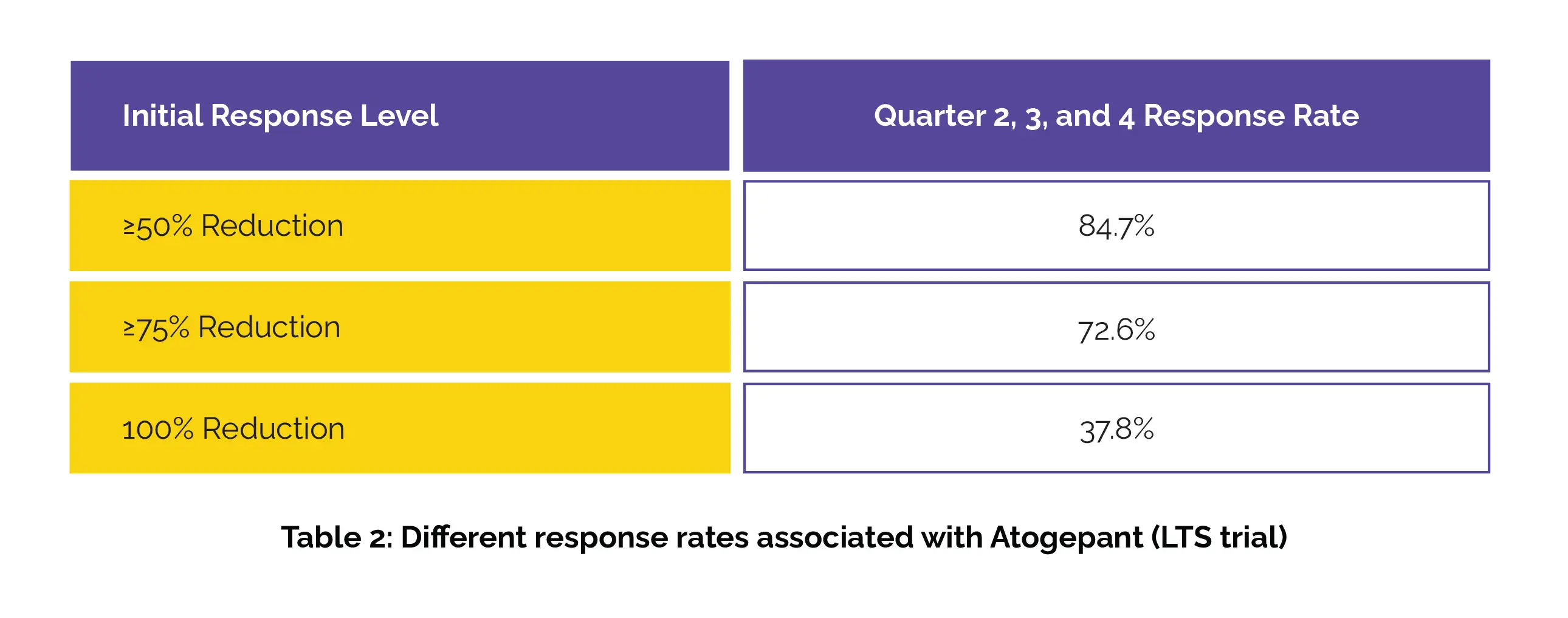 More than 70% of participants who initially responded to Atogepant treatment continued to show long-term effectiveness with continued use.