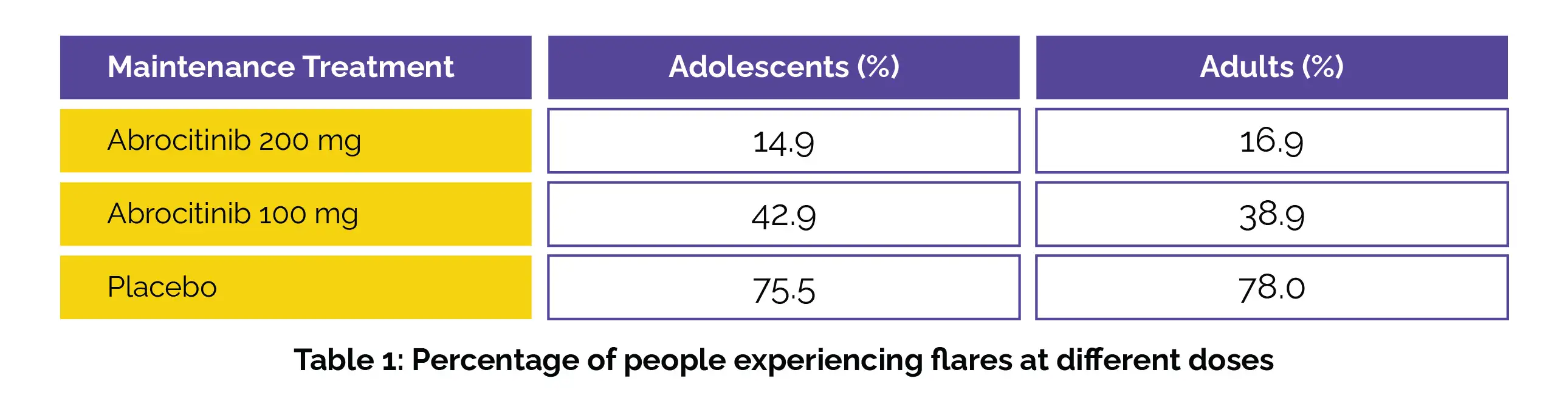 Abrocitinib therapy is useful for avoiding flare-ups in AD-affected adolescents and adults.