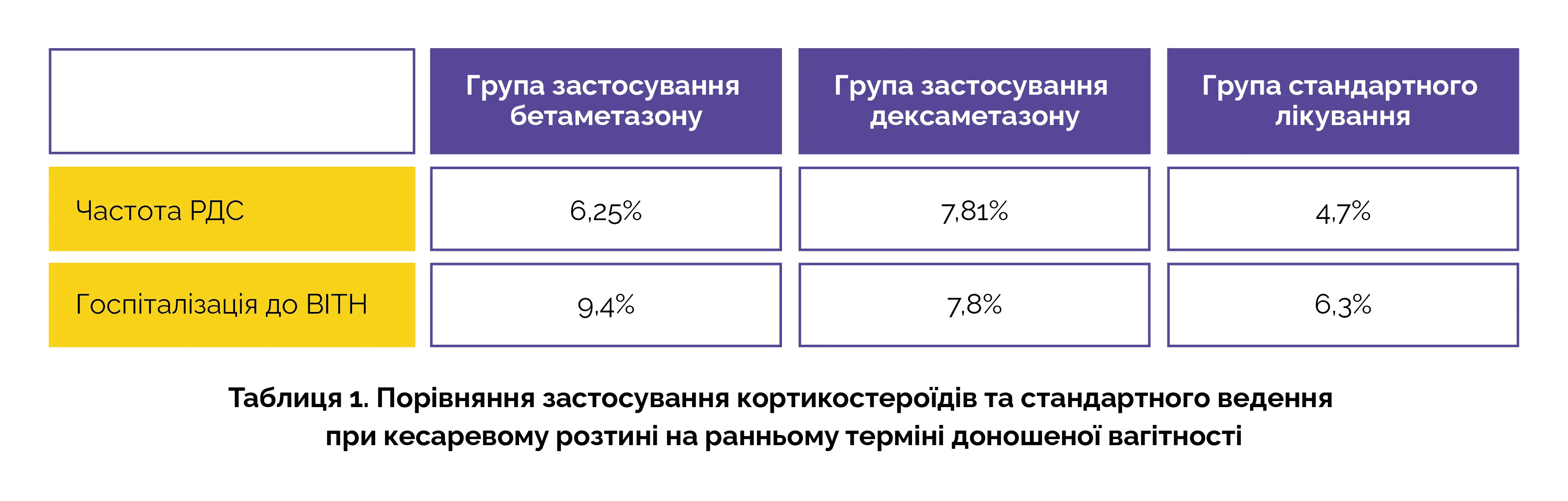 Отже, при призначенні кортикостероїдів при плановому кесаревому розтині на ранньому терміні вагітності слід виходити з клінічної оцінки акушера та індивідуальних особливостей пацієнтки.
