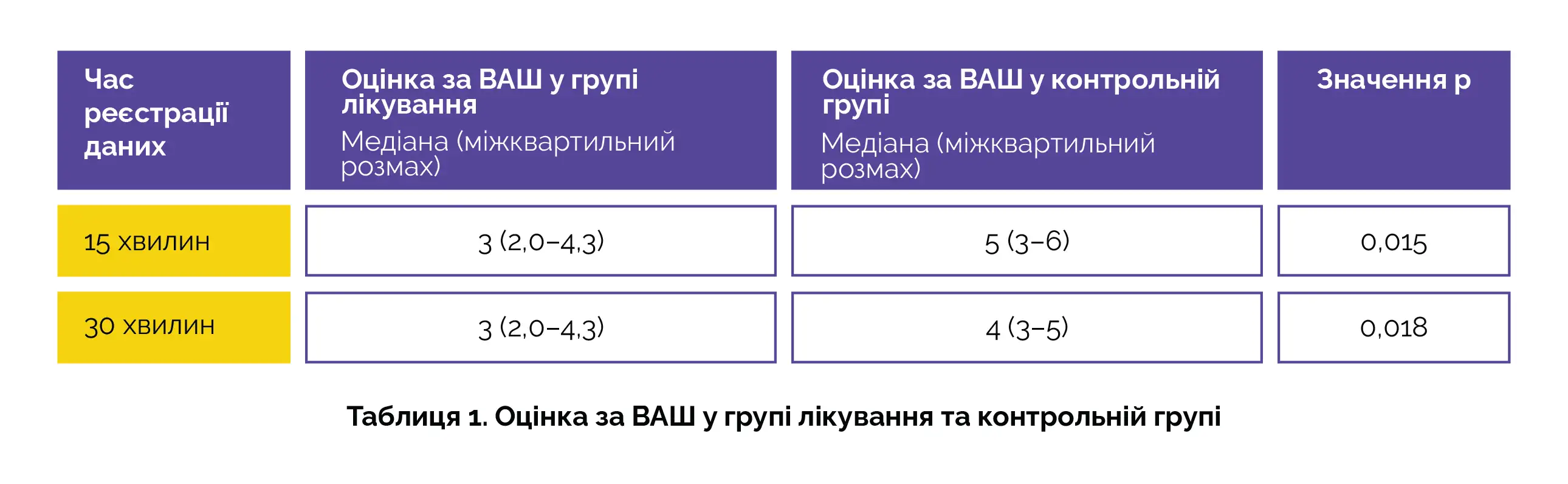 В результаті у групі лікування оцінки за ВАШ (таблиця 1) та доза резервного опіоїду після госпіталізації до післяопераційної палати були значно нижчими, ніж у контрольній групі.
