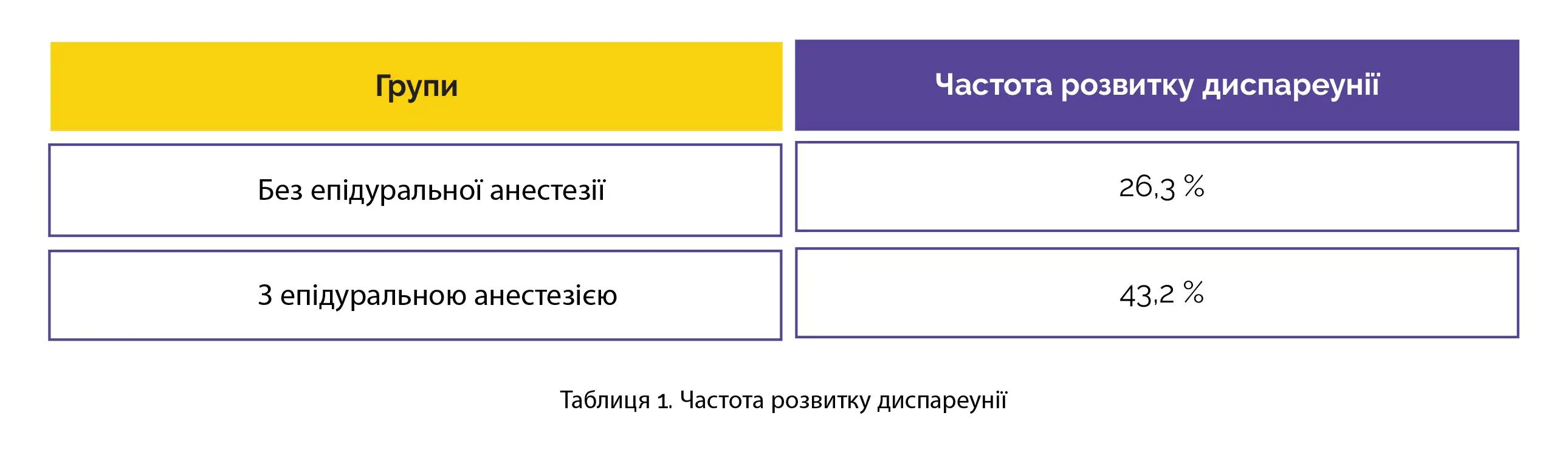 Через шість місяців після пологів у жінок, які отримали епідуральну анестезію, розвиток диспареунії спостерігався частіше (43,2% порівняно з 26,3%), а 1-й, 2-й та сукупний періоди пологів тривали довше порівняно з жінками, які не отримали епідуральну анестезію (див. таблицю 1).