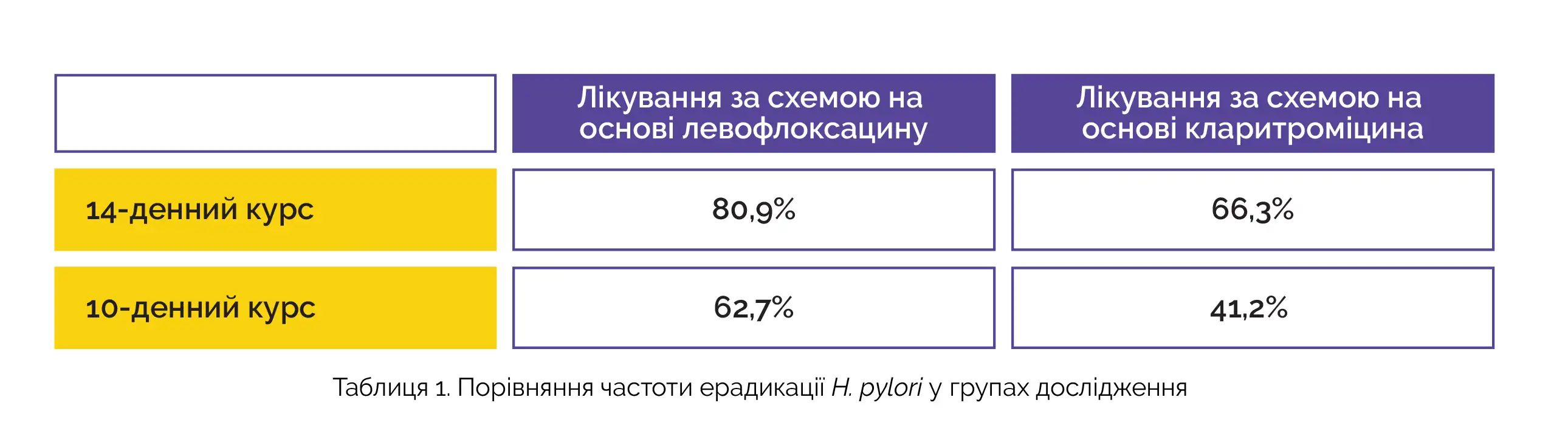 Схема ерадикації H. pylori на основі левофлоксацину – ефективний метод терапії першої лінії, що забезпечує позитивні результати.