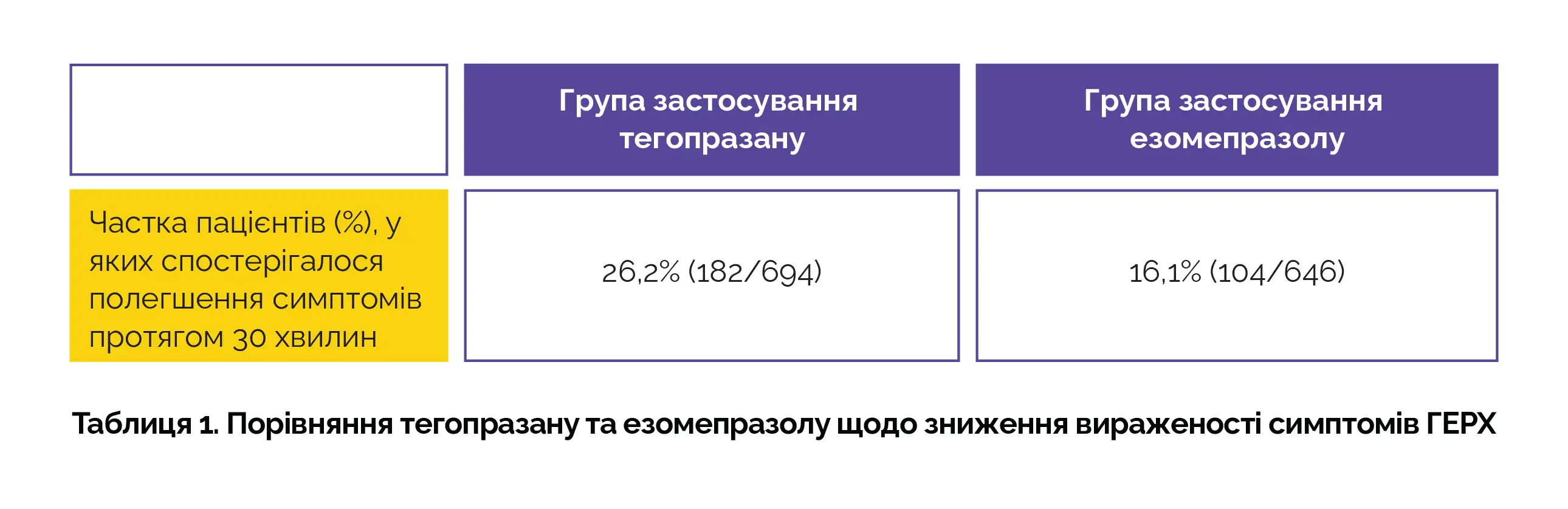 Терапія тегопразаном «на вимогу» забезпечує більш швидке полегшення симптомів ГЕРХ порівняно з езомепразолом.