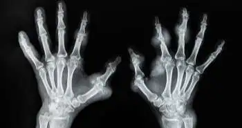 Рівень сечової кислоти при надходженні до відділення ГД становив 10,8 мг/дл (642 мкмоль/л). На рентгенограмах кистей були виявлені остеопенія, ерозії та кілька літичних вогнищ у променевій та ліктьовій кістках, а також кістках зап'ястя, разом із великими об'ємними утвореннями з м'яких тканин. Усі ці прояви вказували на наявність важкої двосторонньої подагри без ознак відкладення пірофосфату кальцію або інших артропатій.