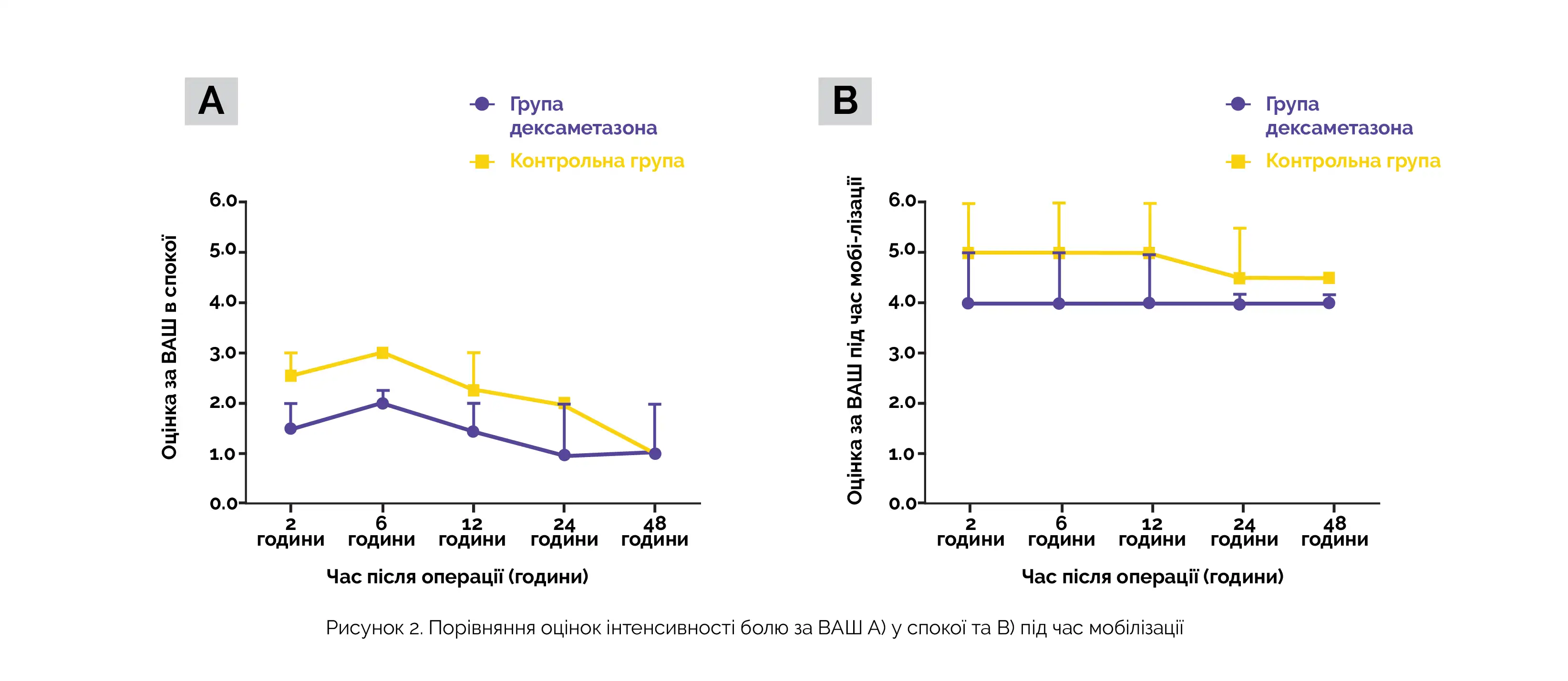 Важливу роль у виникненні та посиленні болю відіграють мікроглія та різні фактори запалення, що секретуються. Дексаметазон пригнічує активацію мікроглії та її морфологічні зміни через 0,5 годин після пошкодження тканин. Дані цього дослідження свідчать, що через 2 години після операції відбувається статистично значуще зниження частоти виникнення болю та його інтенсивності у групі, що отримувала дексаметазон, і це вказує на те, що введення цього препарату забезпечує статистично значуще зниження інтенсивності післяопераційного болю.