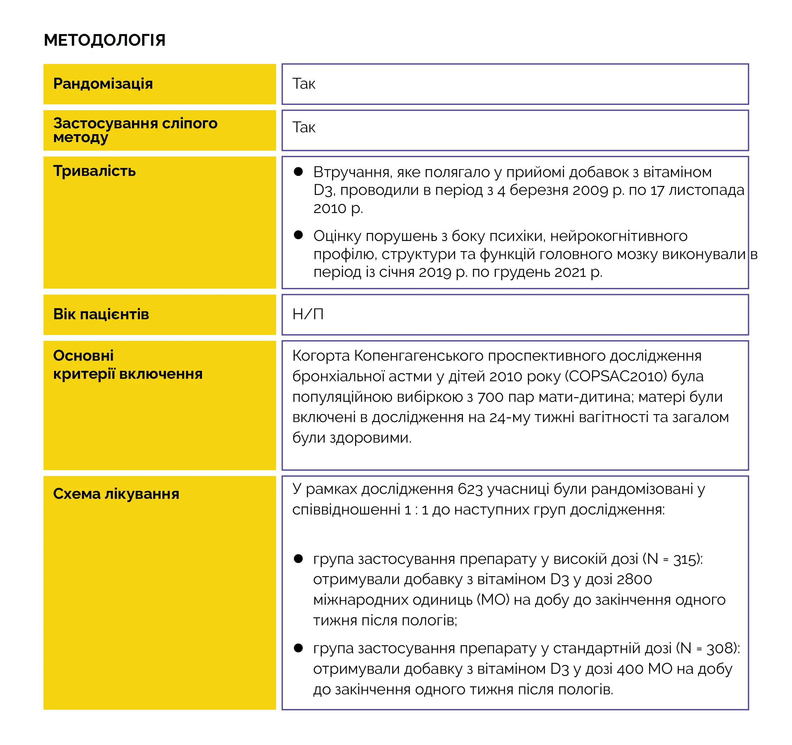 Рандомізованих клінічних досліджень (РКД) щодо оцінки впливу застосування добавок з вітаміном D під час вагітності на появу порушень нервово-психічного розвитку у дітей раніше не проводилося.