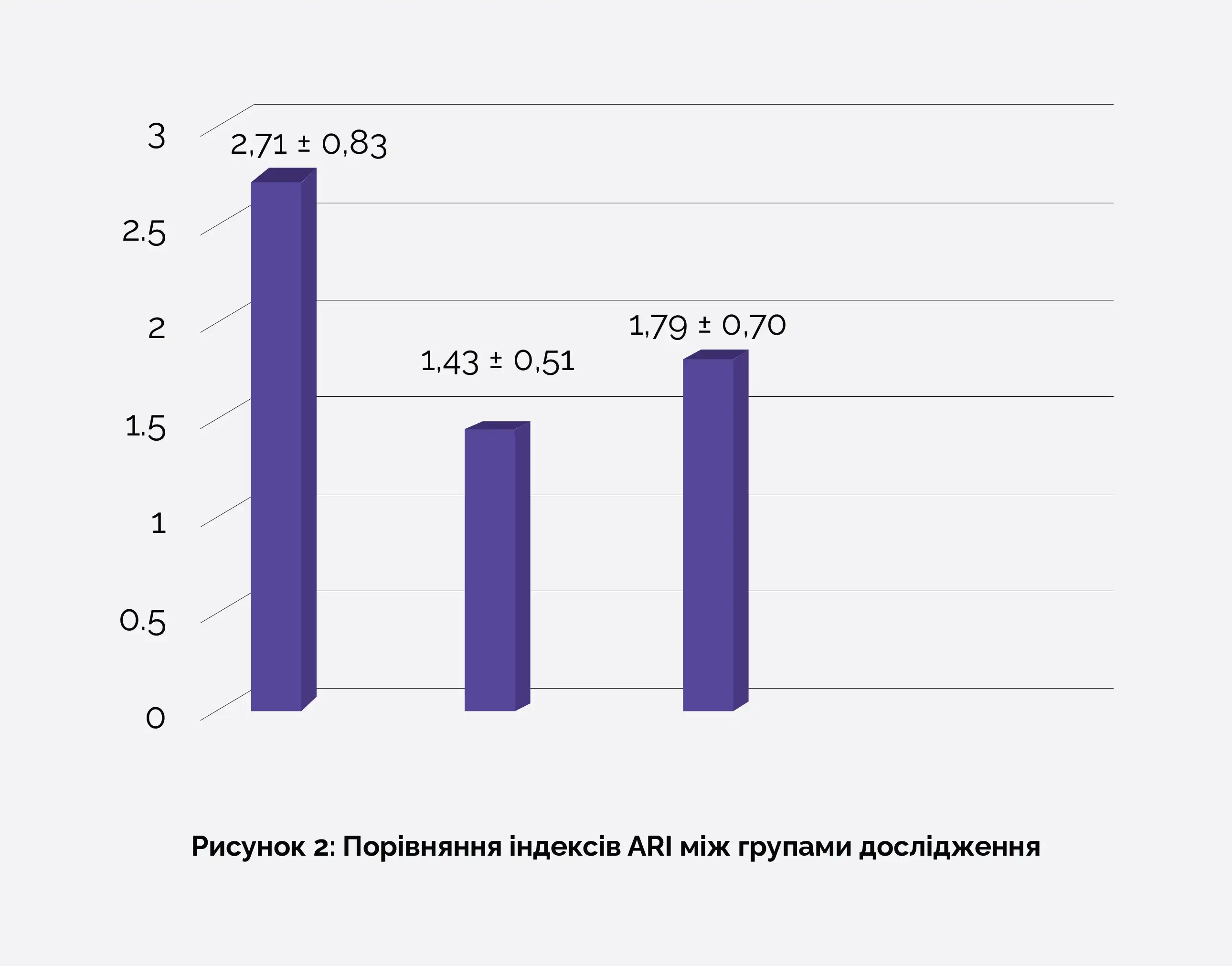 У групі 1 спостерігалися найвищі значення за ЧРШ, у групі 2 — найнижчі, а в групі 3 — проміжні значення (рисунок 1).